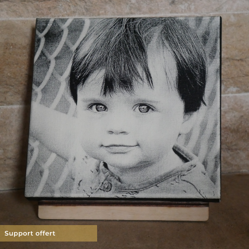 - Un support en bois à monter soit même vous est offert avec les formats 18×24 cm et 20x20cm.